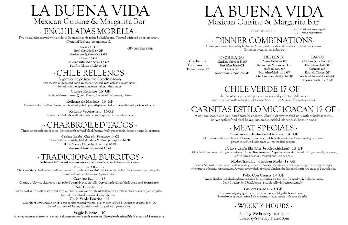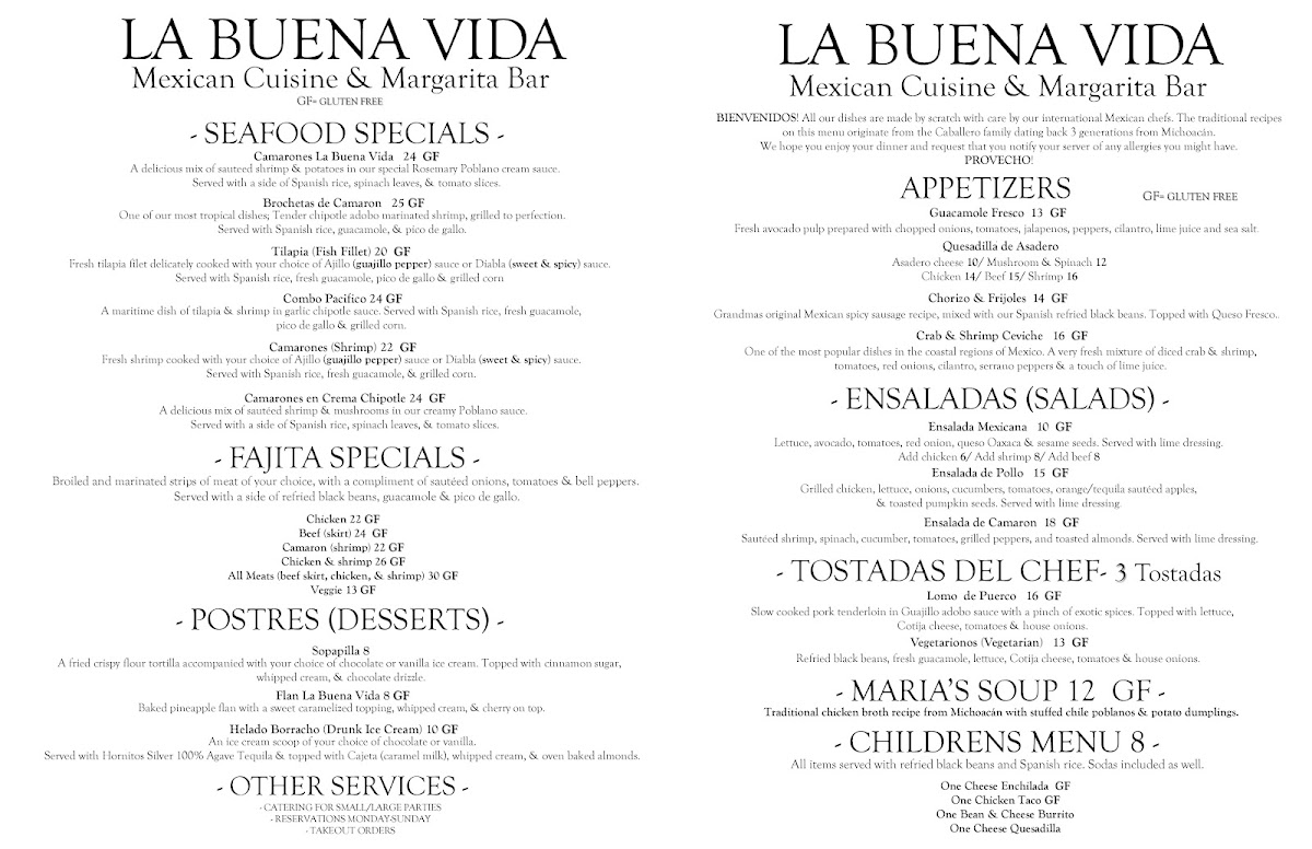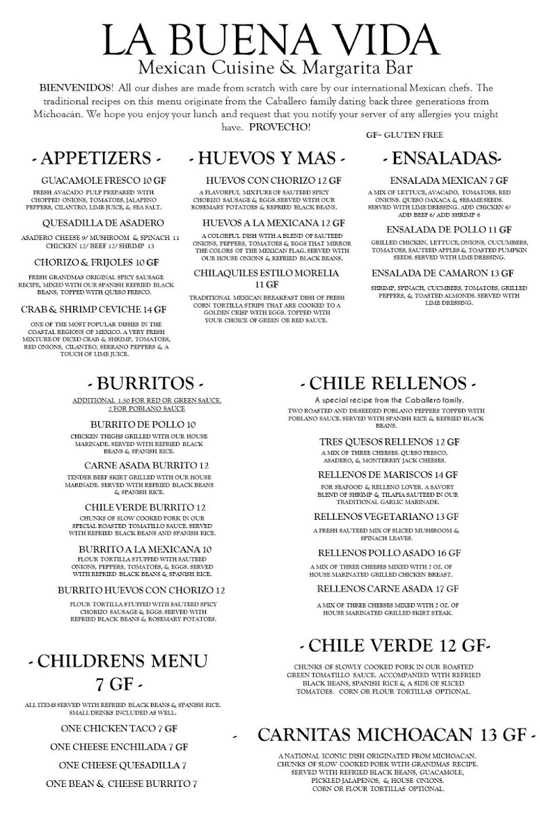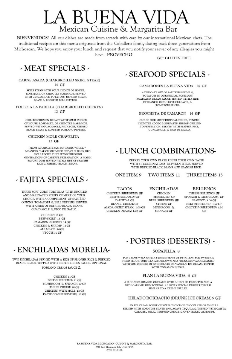 Welcome to La Buena Vida Mexican Restaurant, located in Fort Collins, Colorado. This vibrant eatery offers an extensive menu filled with authentic Mexican flavors, including mouthwatering carne asada and pollo a la parrilla, paired perfectly with fresh guacamole and roasted vegetables. The cheerful atmosphere is complemented by attentive service, making it an ideal spot for family dinners or special occasions. Guests rave about the delicious strawberry margaritas and perfectly cooked shrimp. With enticing dishes and a commitment to quality, La Buena Vida promises a delightful dining experience that keeps patrons coming back for more.